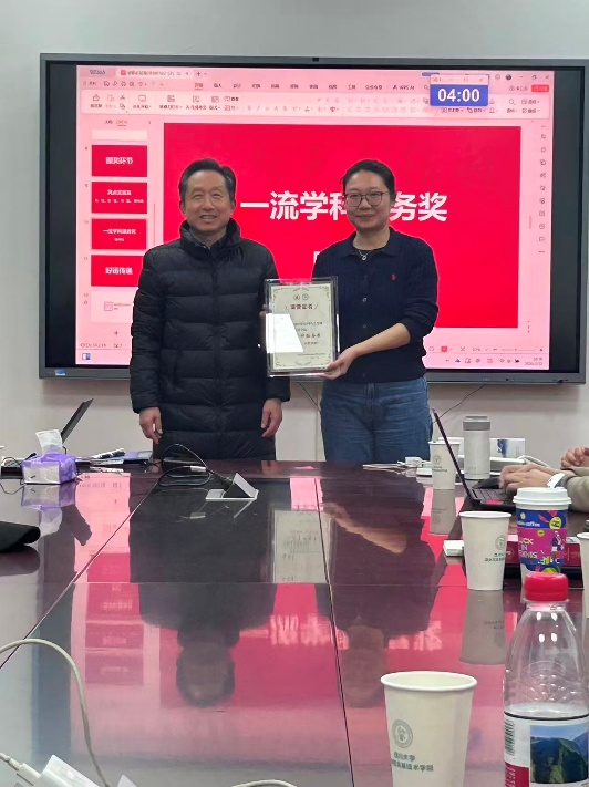 对过去一年在立德树人、学科建设、科学研究、师资队伍建设等方面有突出贡献的教职工颁发奖状。
